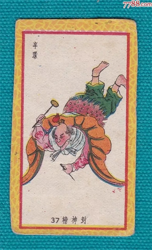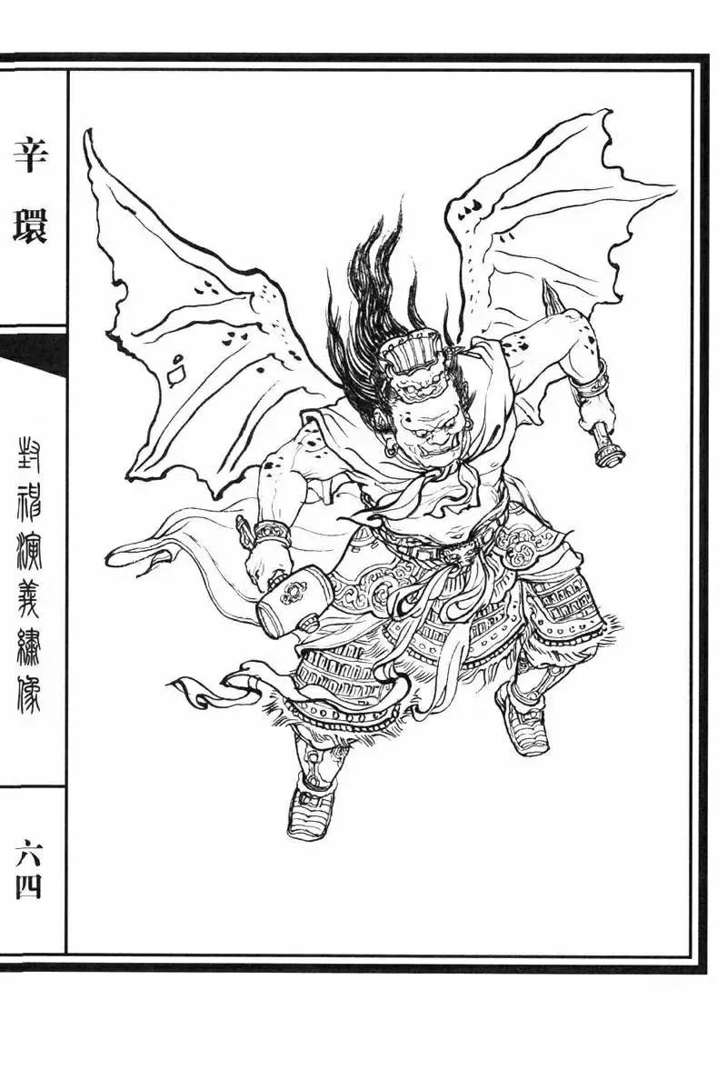 在小说《封神演义》中:辛环乃闻仲太师在黄花山所收的四天君之一。兵器为一对雷公凿的锤钻,本事与雷震子无二,都生有一双翅膀,可以飞天作战。最终死于雷震子的棍下,被姜子牙封神为“雷部二十四位正神”之一,属于雷公一职。