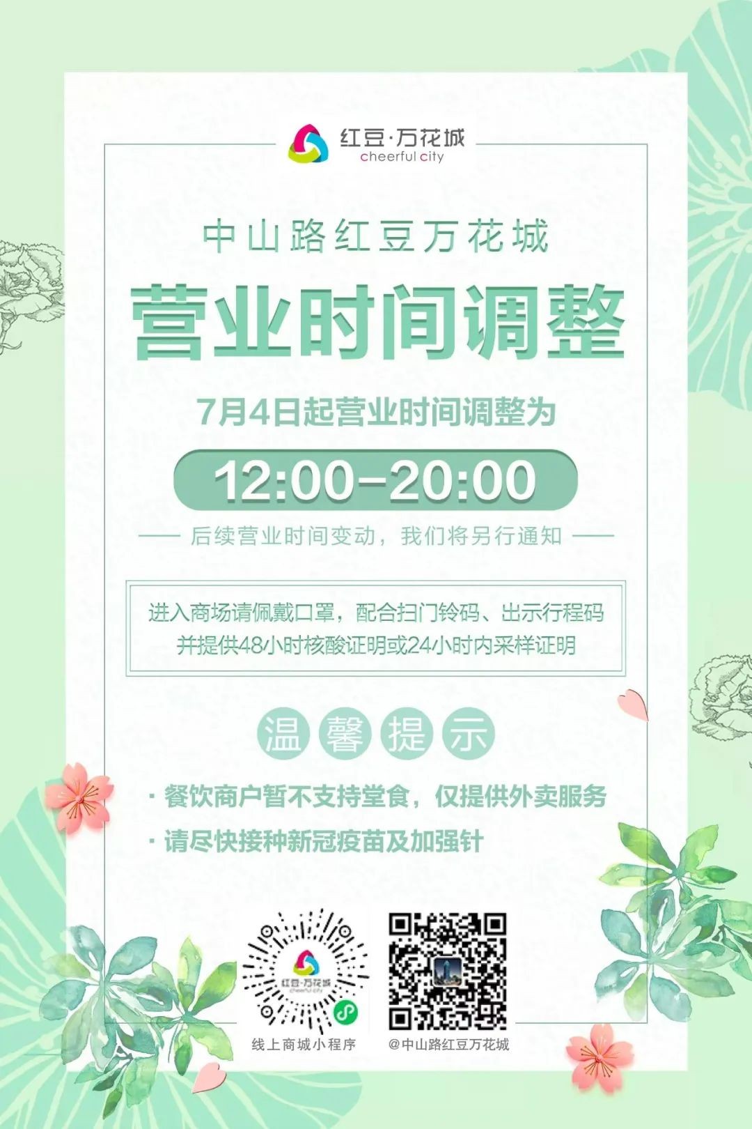 营业时间调整为