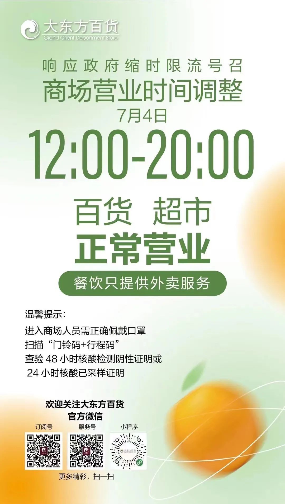 期间欧特福超市正常营业(7:30-20:00)