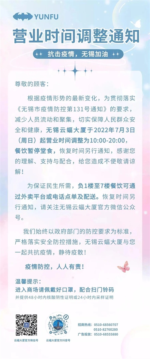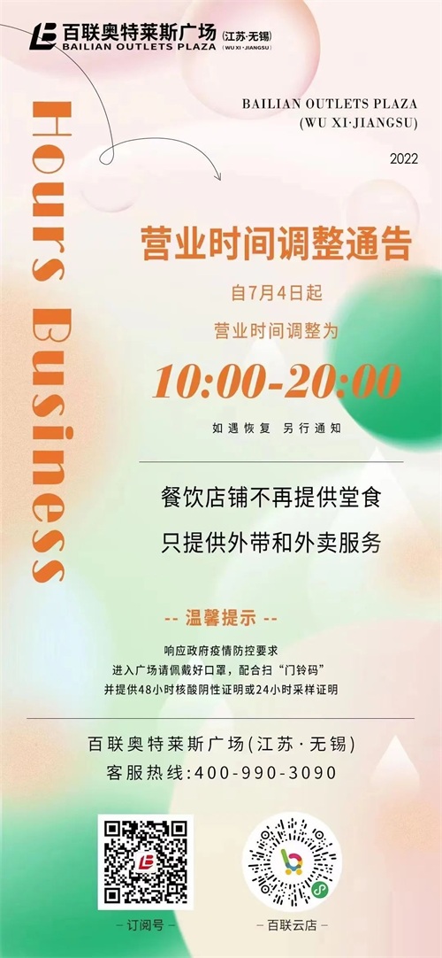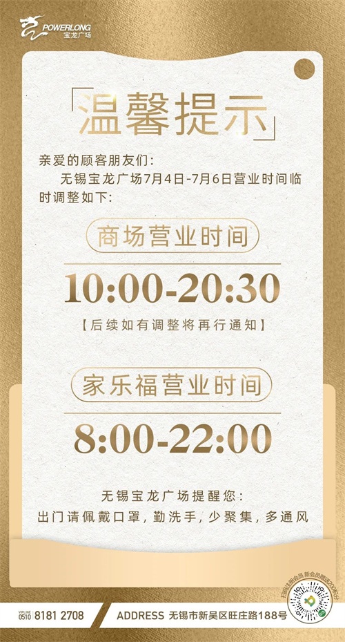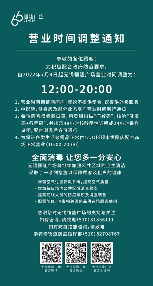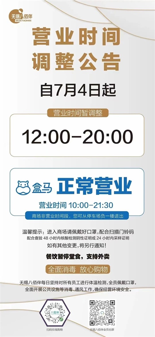 近期无锡部分商场营业时间有所调整