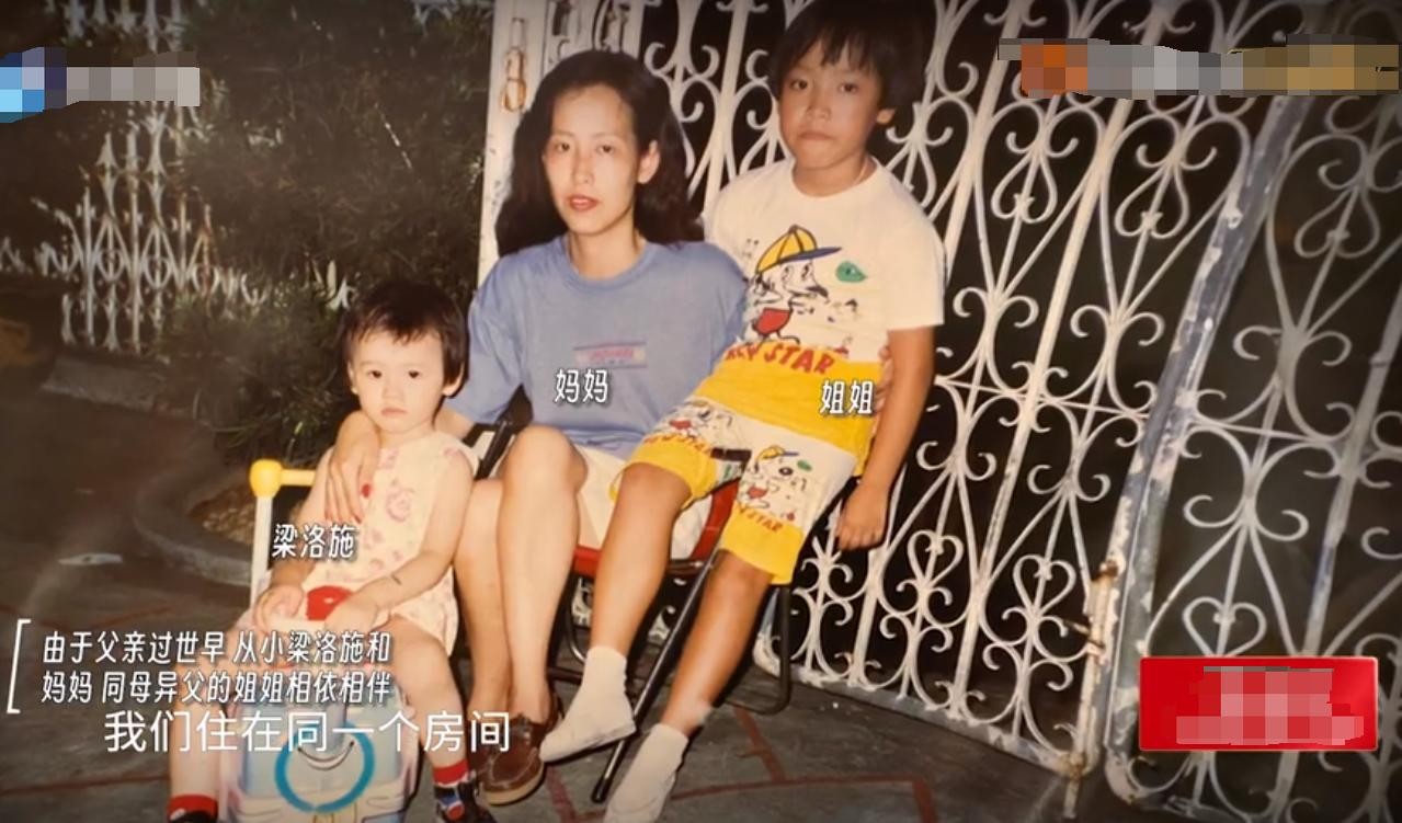 梁洛施父亲出身于澳门的名门望族,在她1岁时意外去世,梁洛施与母亲及大7岁的姐姐三人相依为命。梁洛施在访谈中称童年生活很艰辛,将其形容成一只很漂泊的小船,母女三人没有一个稳定的居所,每两年要搬家,因为房租涨价被房东赶。