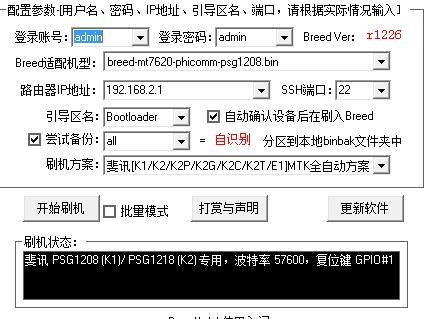 (其实很简单,点下「开始刷机」就能一次性完成 breed 的刷入了。理论上是OK的,它会先帮你设置密码、刷入降级固件,开启 路由器telnet 和 ssh,再刷入 breed 什么的的。整个过程踏都会帮你完成,但如果过程中出 错,你又不知道如何解决的话,那么请尝试另一种方法吧。)
