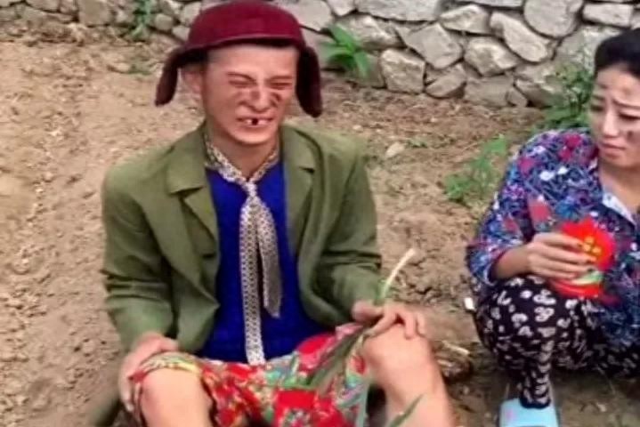 他哭着回家给他爹说,他爹说,你应该说吊孝嘞吊孝了。