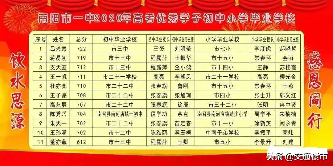 我们再看看南阳市区高考高分的学生来自那些初中和小学。