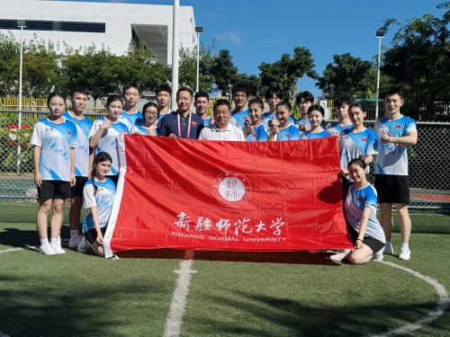 新疆师范大学民族健身操队员合影留念。受访者供图