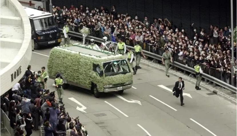 跑在灵车前的黑衣人,是香港娱乐圈的传奇保安许颂昇。他与张国荣的交情深厚,那一天,他选择以这种方式陪伴“哥哥”最后一程。“这是我能为他做的最后一件事。”许颂昇后来回忆道,简单的话语中饱含深情。