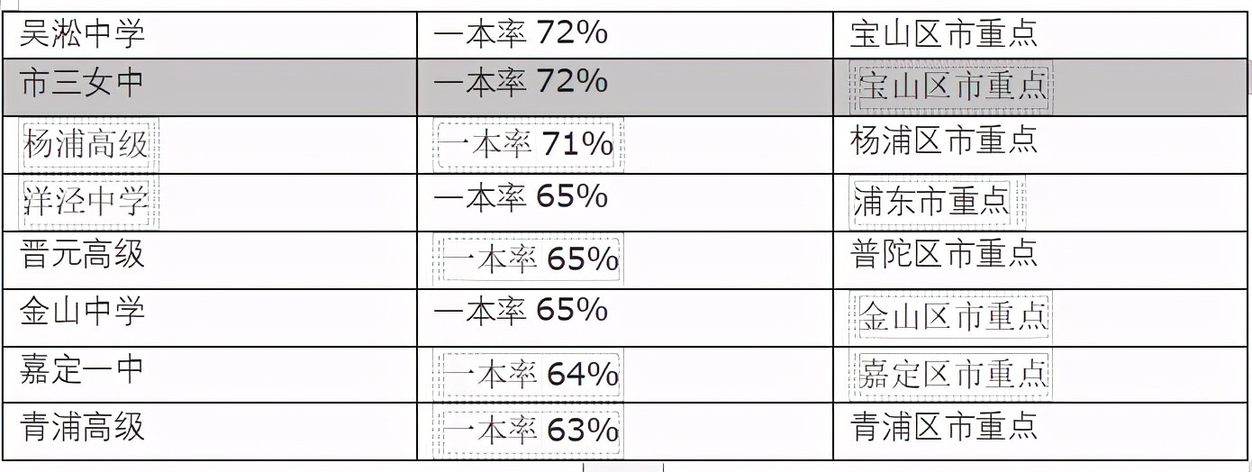 洋泾中学自3+3制度改革以来,高考成绩基本保持稳定态势,学校的本科录取率始终保持在96%以上,一本率在60%以上,交大复旦录取人数大约在10人左右。横向比较如下表。