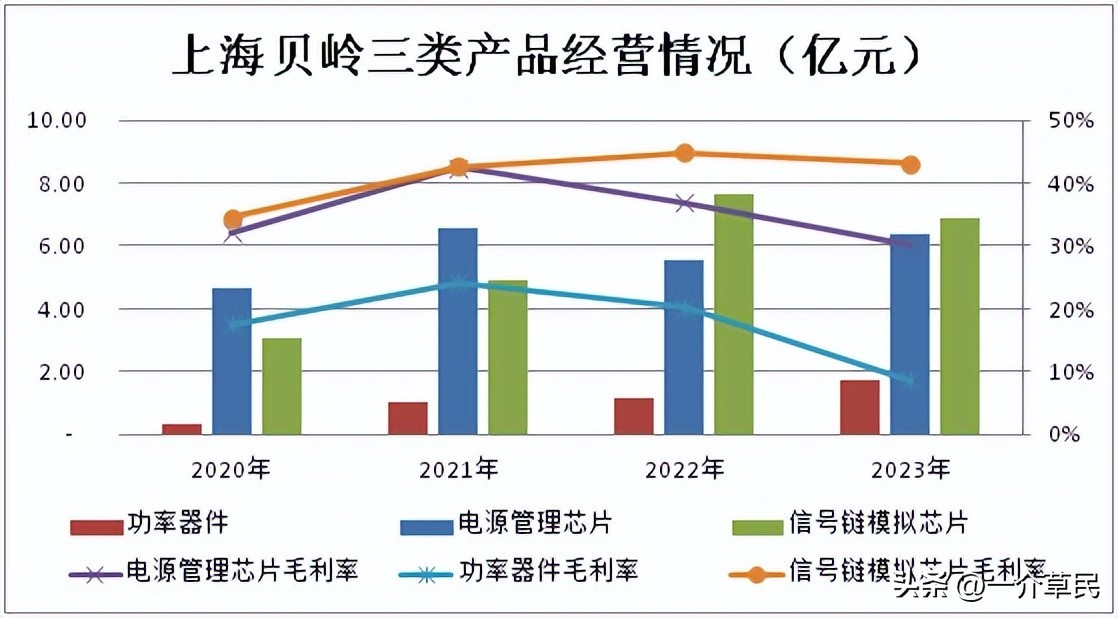 信号链模拟芯片、电源管理芯片和功率器件三类产品中,功率器件虽然保持增长,可毛利率持续下滑;信号链模拟芯片23年收入最高,毛利率波动也小于电源管理芯片,发展趋势亦好于电源管理芯片。