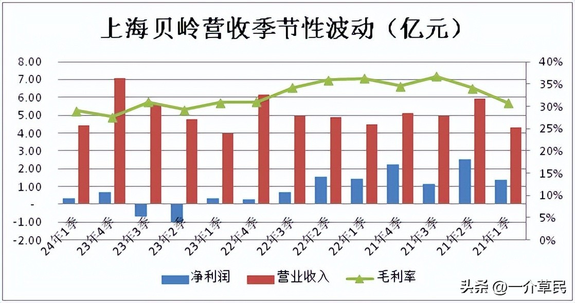 图中可以看出,公司营业收入呈1-4季度递增的现象,21年不明显。