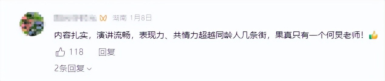 网友热议:“88年的小何炅好可爱啊!!!天生吃这碗饭啊!!!”“一点都没卡壳,有情感有节奏。不愧是优秀的何老师”“好厉害,一气呵气,一点都不瞌巴”。