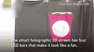 达斯琪数字科技利用风扇旋转原理,通过LED灯珠排列及程序控制等多项专利技术产生全息裸眼3D视觉冲击感;它的外形如同电风扇,“扇叶”上却排满了led小灯泡,能在“扇叶”扫过的区域出现了连续的3D影像,这些画面悬浮在空气中,且不遮挡后面的物理空间!这款累计吸引了2000万人的围观的神器,外国人看过之后无不惊呼,这个”电风扇“到底是什么神奇的科技。原理是:一旦通电后,叶片开始旋转,而安装在叶片上的 LED 灯就会发光。而我们能看到叶片上投射出的 3D 浮空影像的原因,主要是因为人眼视觉暂留(POV)现象。因为没有边框,没有固定的屏幕,动图看起来就像悬浮在空中,十分的逼真。