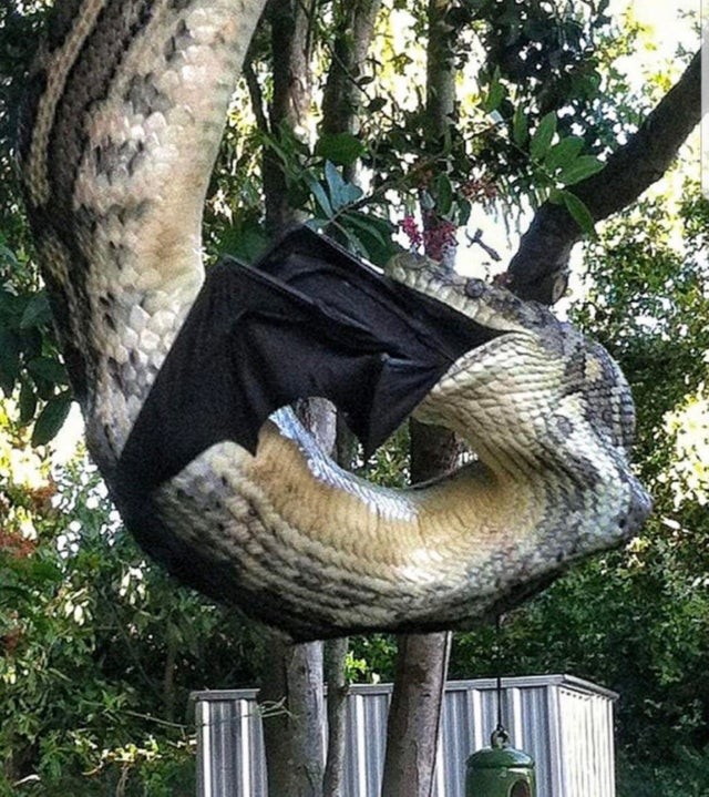 一条巨蟒吞下一只蝙蝠