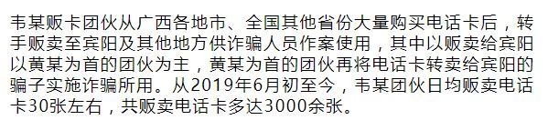 黄某为首的团伙再以200-250元/张的价格卖给在宾阳实施通信网络诈骗的骗子。