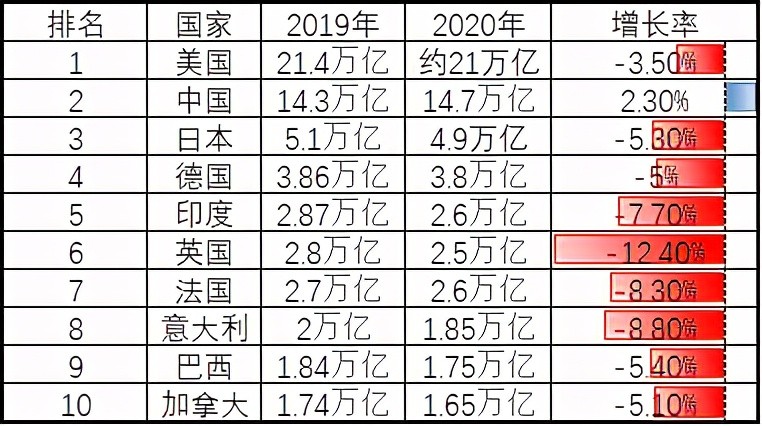 2020年世界GDP排名前十