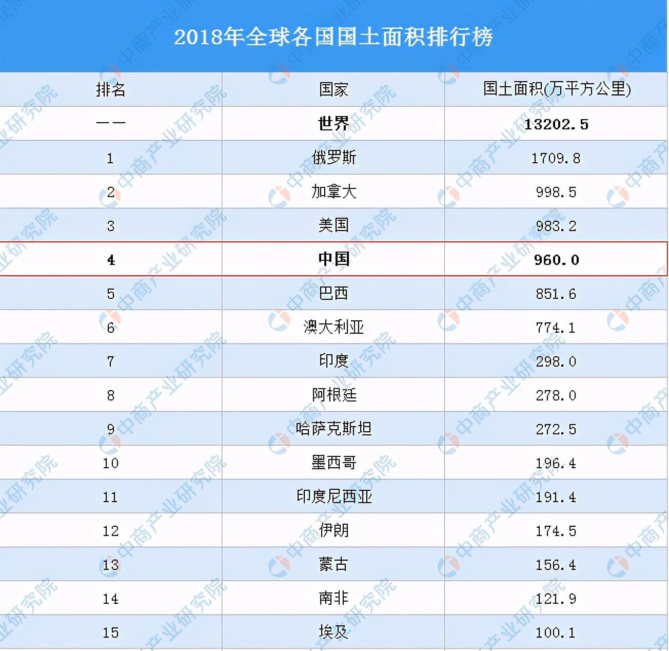 世界各国国土面积排名