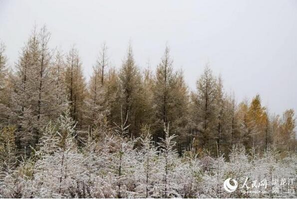 眼下的漠河正值深秋时节,森林里的五花山色秋意正浓,突来的降雪让金黄色的山坡披上了雪白的“新衣”。远远望去,雪中的森林宛如童话世界。别样的风景吸引络绎不绝的的市民和游客在大雪中拍照留念,记录这一份秋日里的惊喜。