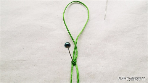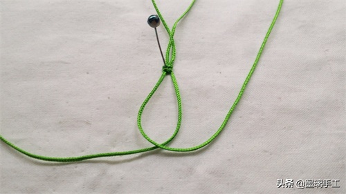 13.2根绿色的线交叉形成一个环,中间夹着串珠子的金丝线。如图: