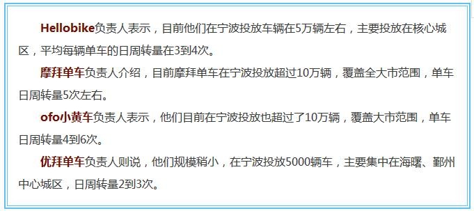 目前宁波共享单车已超20万辆