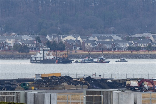 1月31日,搜救人员在美国华盛顿里根国家机场旁的波托马克河上工作。新华社记者 胡友松 摄