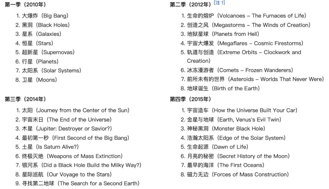 该纪录片共有七季,恢宏巨制,为大家呈现了宇宙中我们知道的所有事情。第八季预计2020年上映。