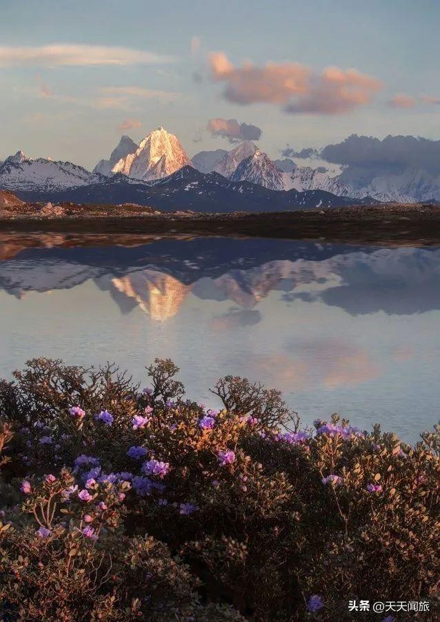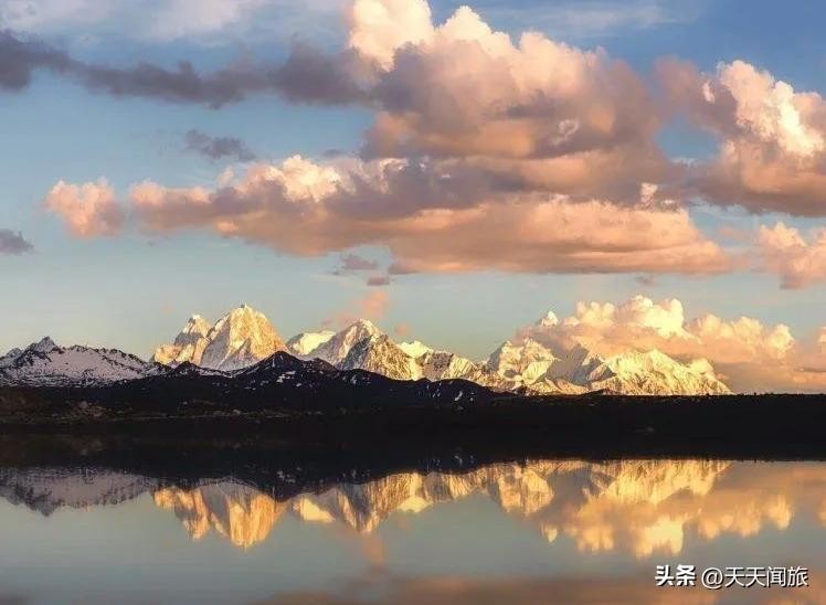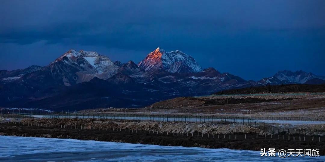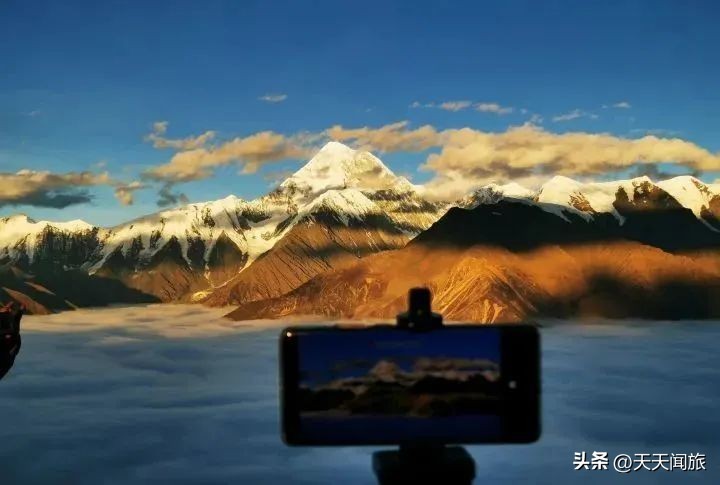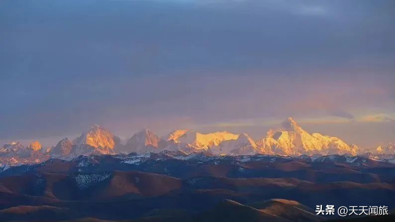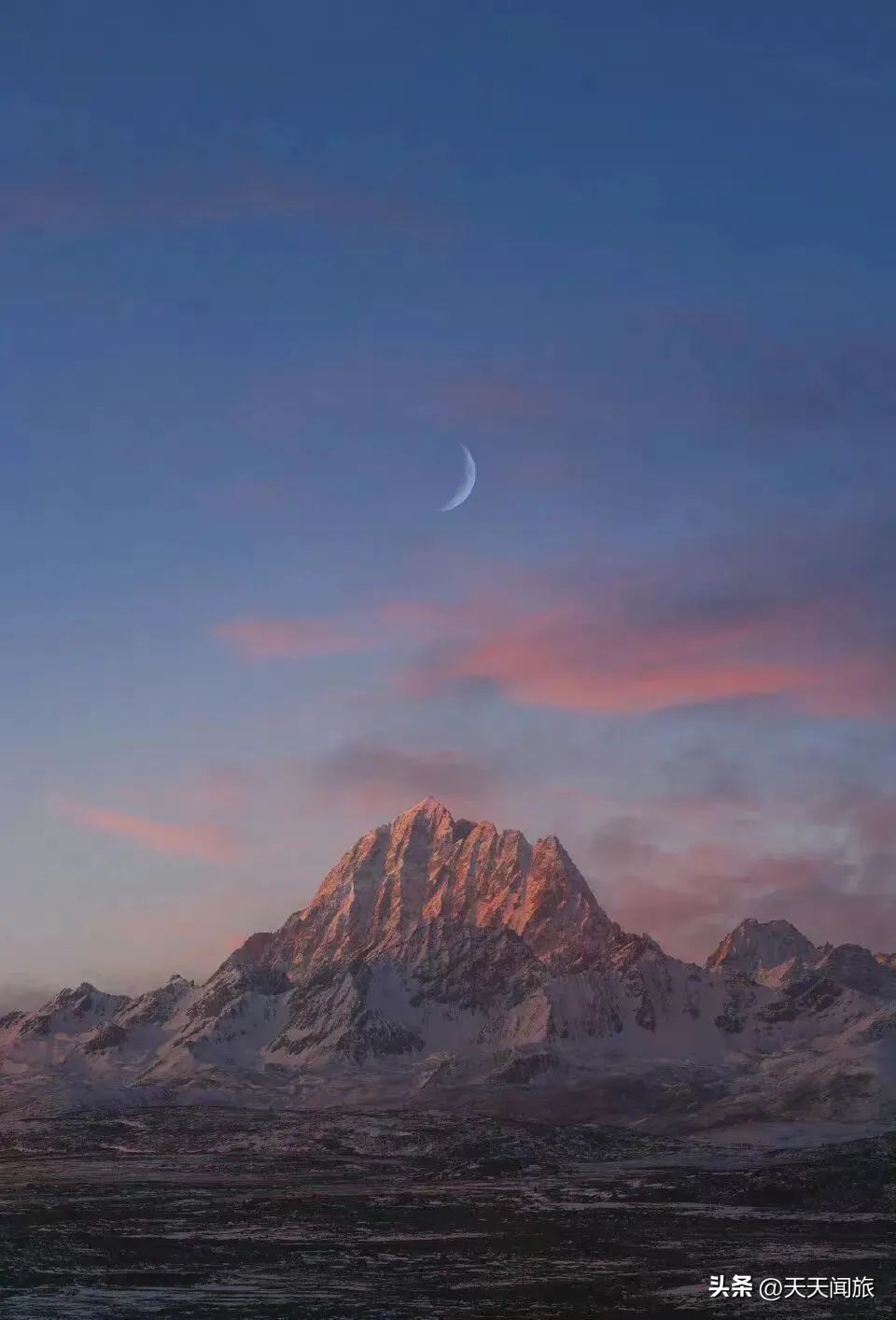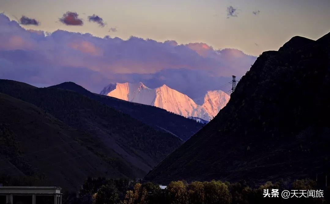 #秋日生活打卡季#现在去看贡嘎山正是时候,深秋初冬的云层低,比较容易看到日照金山的壮丽画面。