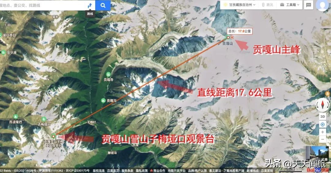 子梅垭口观景台距贡嘎雪山主峰直线距离只有17.6公里