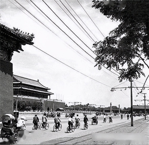 1950年,长安街上通行有轨电车,从长安左门、长安右门南侧通过