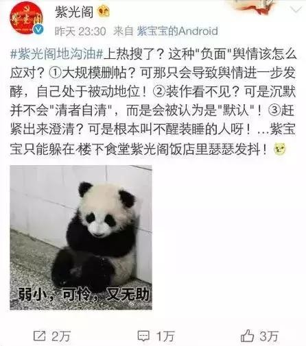 这里不仅没有地沟油,而且作为建筑的紫光阁,始建于明朝正德年间,见证了中国百年兴衰,如今是国家领导人接见外宾的重要场所。此外,还有一家杂志叫《紫光阁》,其背后的主管单位是中央国家机关工作委员会,这也正是“惹事”的微博所出。