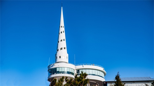 莲花山观景台的到达方式建议自驾,在山上设有停车场,然后再步行或者乘坐景区的观光车就可以到达观景台的楼下。观景台也是一处十分有特点的建筑,通体白色像一顶尖尖的帽子。进入观景台也是要付费的,里面是一座咖啡厅,可以小坐一下也可以在最高的露台观景拍照。