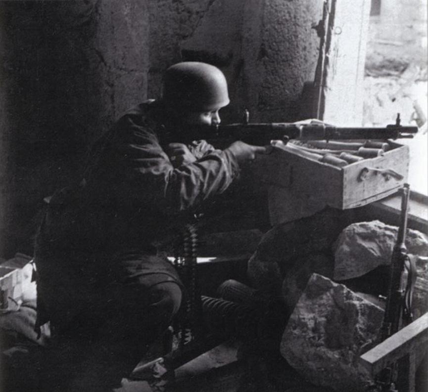 伞兵们很喜欢这种设计,在营救贝尼托-墨索里尼的行动中第一次使用了它。但后来的照片显示伞兵们虽然携带FG42,奇怪的是,他们在行动中从未开过一枪,其他枪支也是如此。在接下来的几个月里,FG42被少量部署在意大利,真正让它扬名的是著名的蒙特卡西诺战斗。