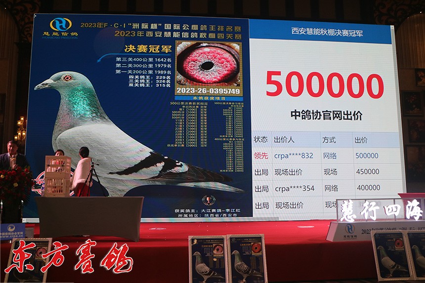 季军鸽驻50万元高价被鸽主现场拍回收藏。