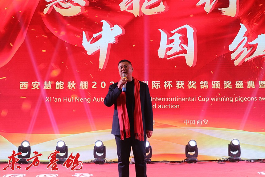 慧能信鸽董事长霍新余发表了热情洋溢的祝酒辞:尊敬的邢会长、各位领导、朋友们,大家晚上好!我非常激动,非常荣幸的跟这么多来自全国各地的,有智慧、有能力的朋友相聚西安,也欢迎大家的到来,对信鸽传承,对慧能的不离不弃,在此,我也对取得优异成绩的鸽友们表示衷心的祝贺,真诚的邀请所有朋友们到西安旅游做客,我说过了很多年,我最后再次表示,慧能是全国鸽友西安的家,欢迎全国的朋友们常回家看看。