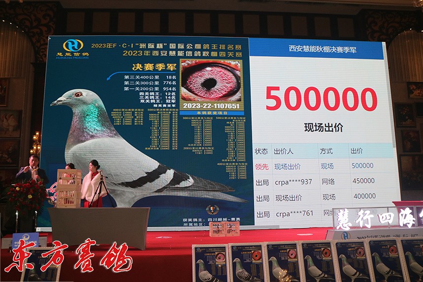 亚军鸽以50万高价被鸽主现场拍回。