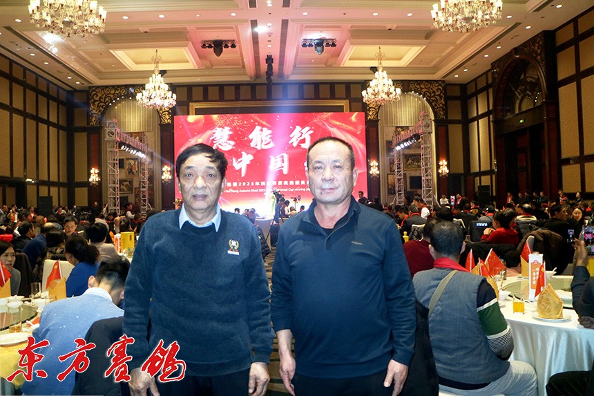 山西鸽友邓宝礼(右)张林生在拍卖会现场留影。