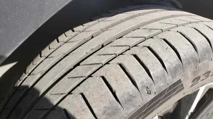 第五、后轮啃胎,有车主说后轮有啃胎问题,据途观L官网介绍,全系后轮稍微外八能增加行驶稳定性,这样设计后轮内侧轻微磨偏是必然的,不影响行驶安全。