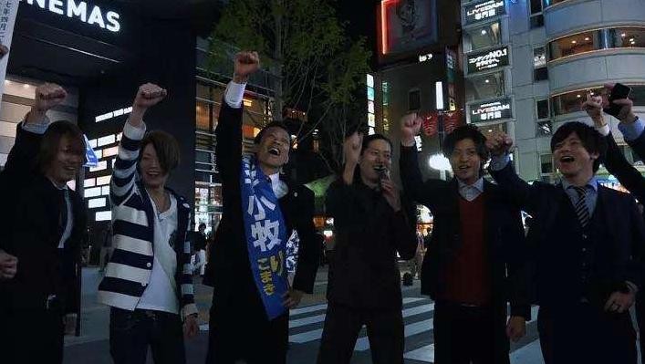 他频繁出现在新宿街头,为自己竞选拉票。虽然最终惜败,但表示下届仍会继续参与。