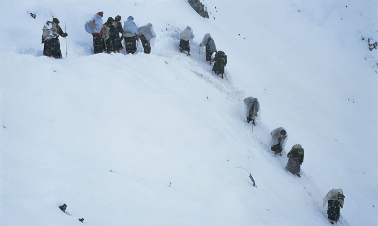 12月28日上午11:30分,登山队的五名队员,全副武装攀登到了接近峰顶的山脊处。