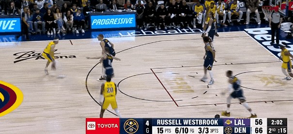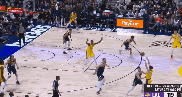 湖人的绞肉机让掘金替补们集体站不稳,约基奇最后一分钟打三分前一度迟疑,大概就是在考虑“我传出去,他们真能投进吗?”