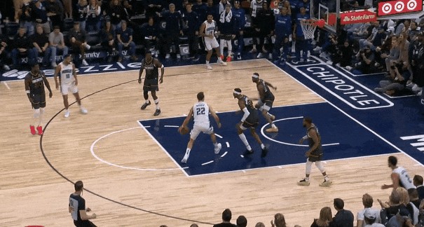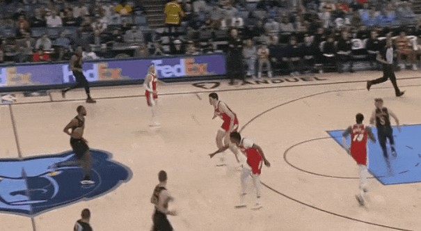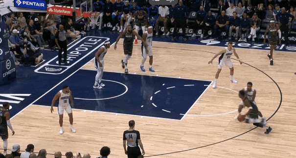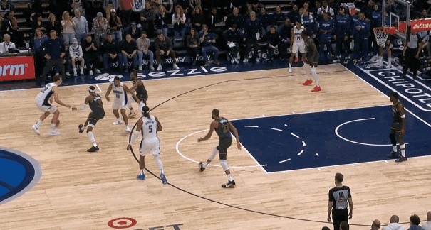 除了给3J两个封盖外——其中一个是上线延阻灰熊反击,回身盖掉3J——最体现莫布里能耐的,大概是这个瞬间: