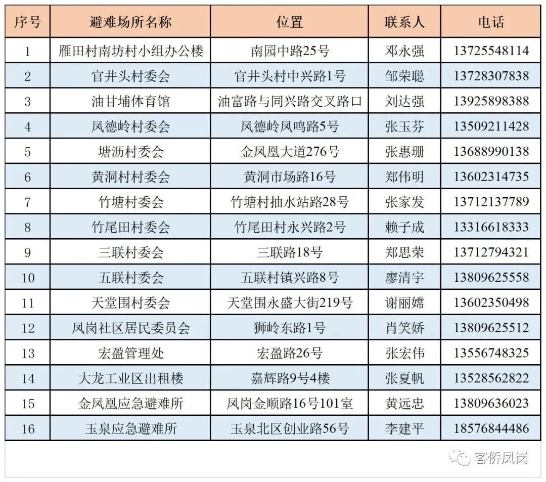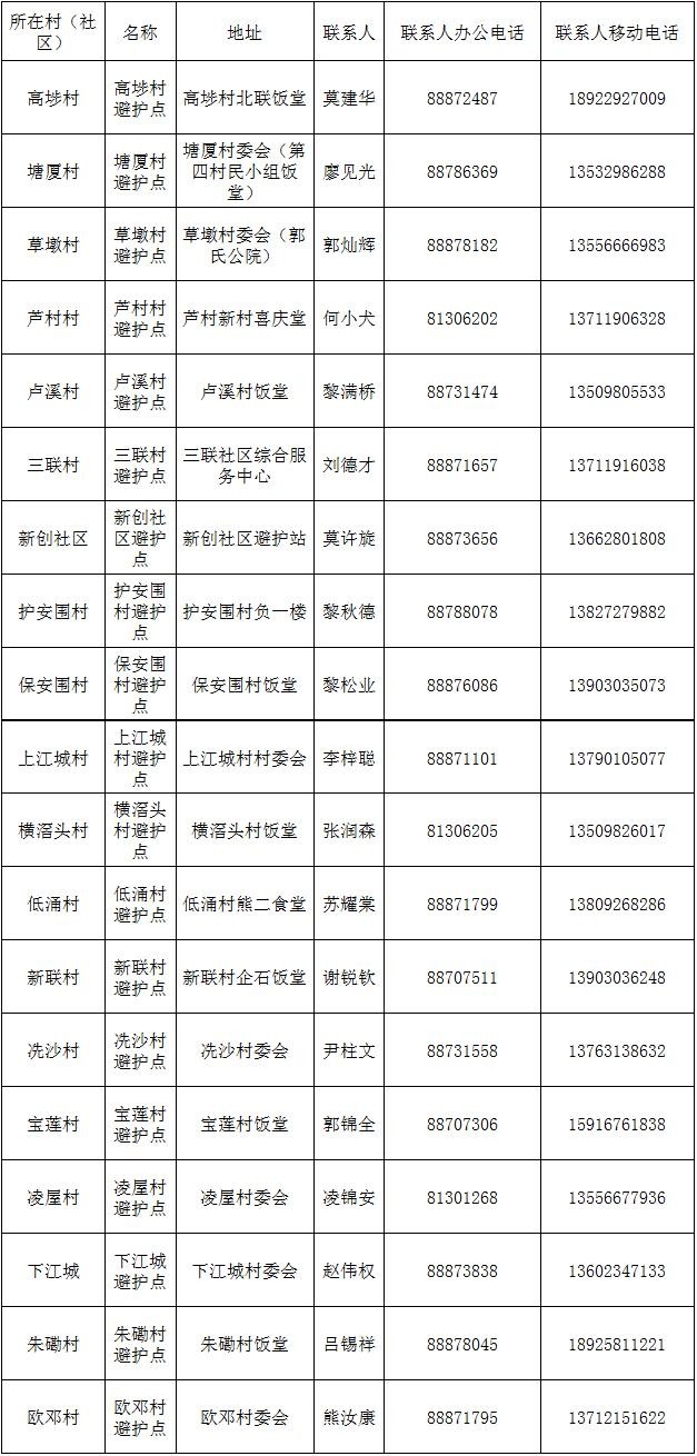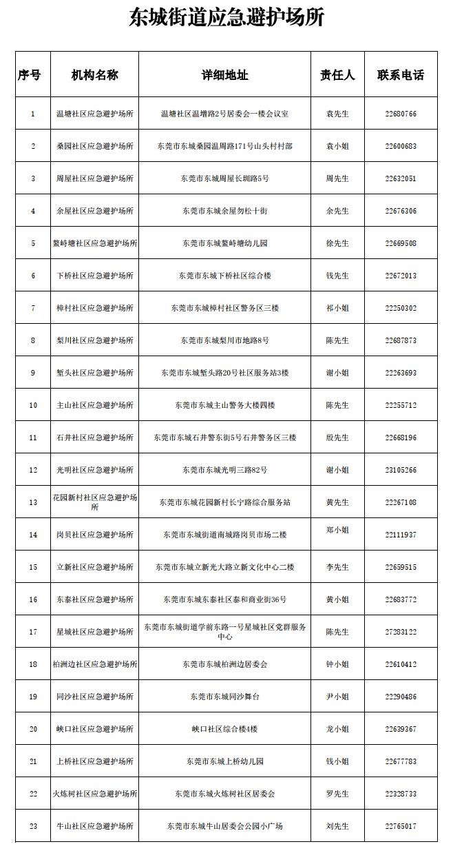 请社会各界人士积极帮助有需要的人员前往就近的避难场所,或向相关避难场所提供线索。需要避护的群众,可就近到以下避难场所求助或拨打避难场所联系电话。