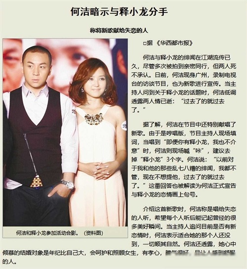 不过啊,娱乐圈的爱情来得快去得也快。这不,才过了半年,两人就分道扬镳了。当时可是闹得沸沸扬扬,各种猜测满天飞。有人说释小龙不成熟,不负责;也有人说何洁太炒作,不真实。总之呢,这段感情最后是以不愉快的方式收场了。