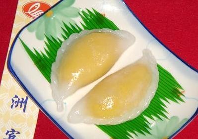 原料 生粉、澄面各250克、盐3克,三花淡奶30克,猪油20克,奶皇馅200克。