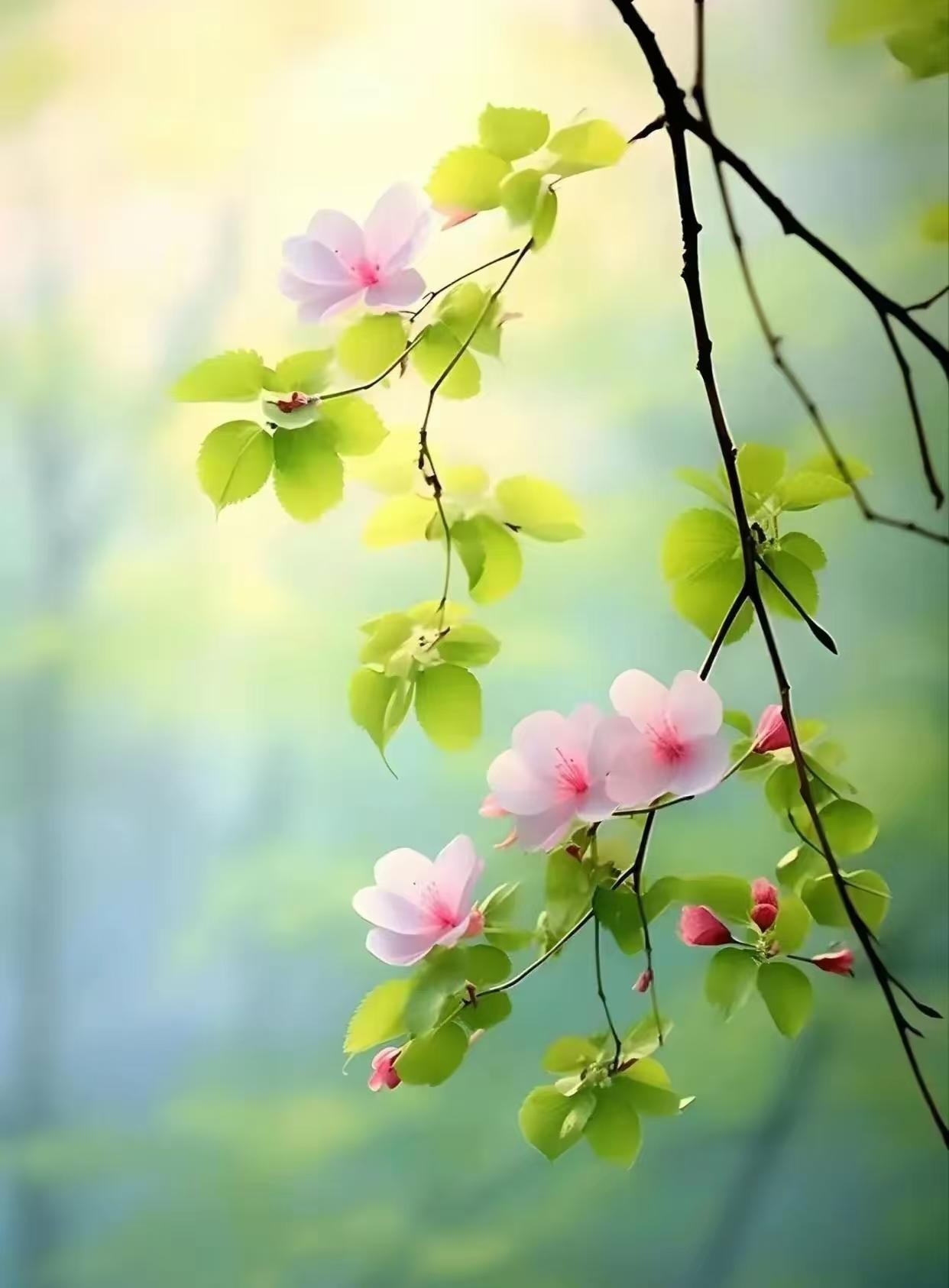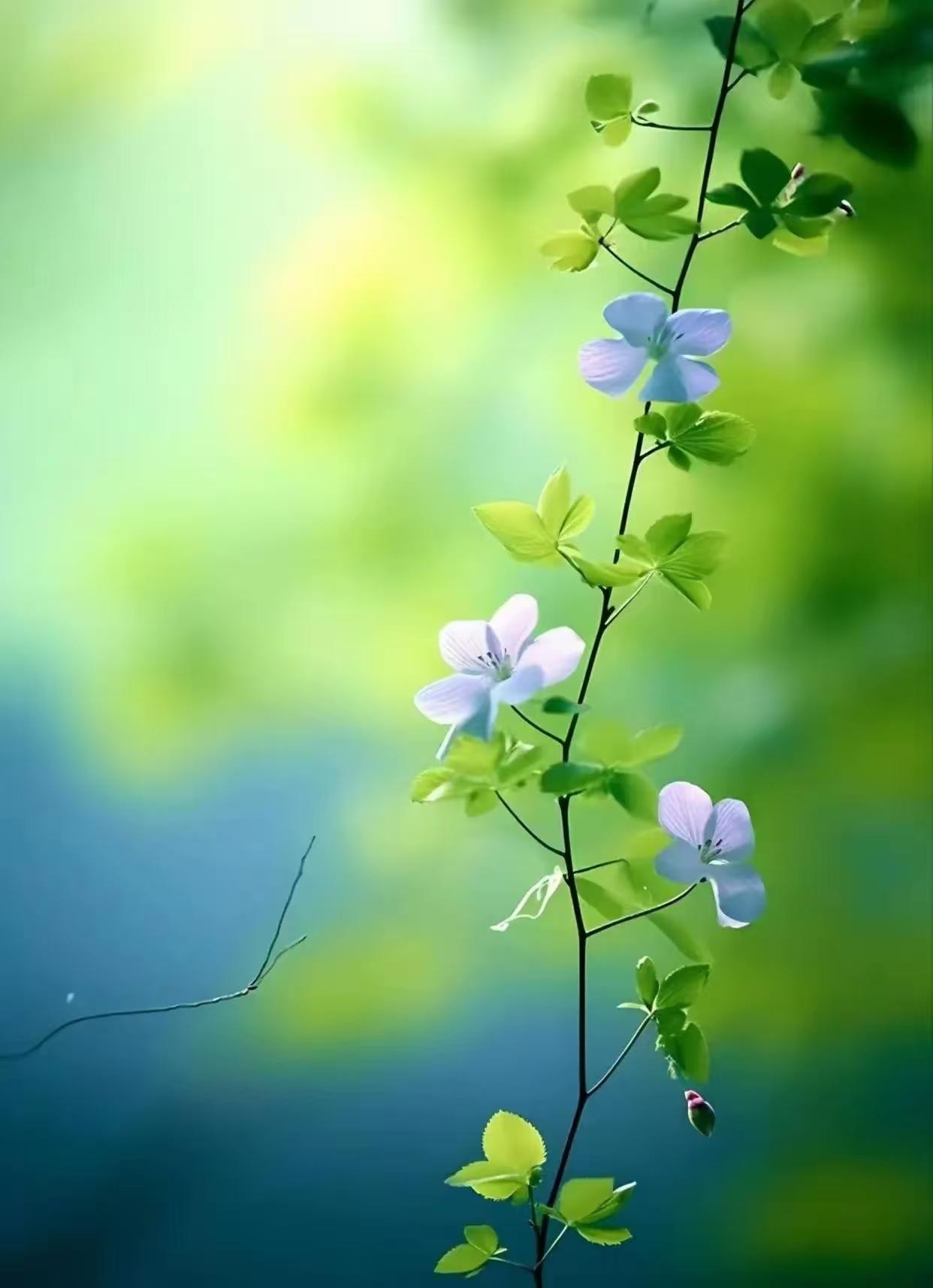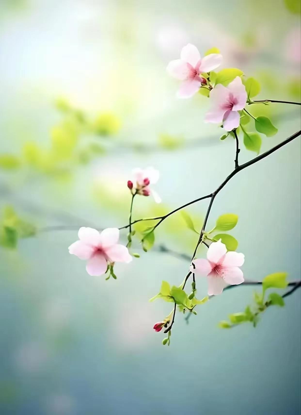 陪伴自己的唯有窗外一帘疏疏落落的雨,还有庭院里树枝上几朵淡淡的花。轻灵的雨丝、淡雅的花,这一幕如梦似幻又透着美丽的哀愁。