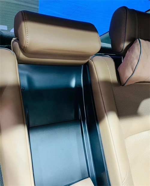 后排中央扶手拉下来之后内部是黑色硬塑料,不再是12代皇冠连贯一体的真皮覆盖,新的皇冠在用料上不及第12代皇冠。