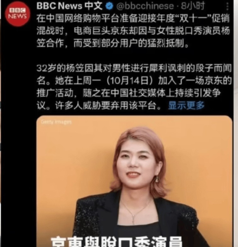就在杨笠的抽烟事件尚未平息之际,她又因代言京东而遭到了男性消费者的强烈抵制。京东作为国内知名的电商平台,一直以其高品质的商品和服务赢得了消费者的信赖与喜爱。,当京东宣布邀请杨笠作为代言人时,这一决定却在网络上引发了轩然大波。