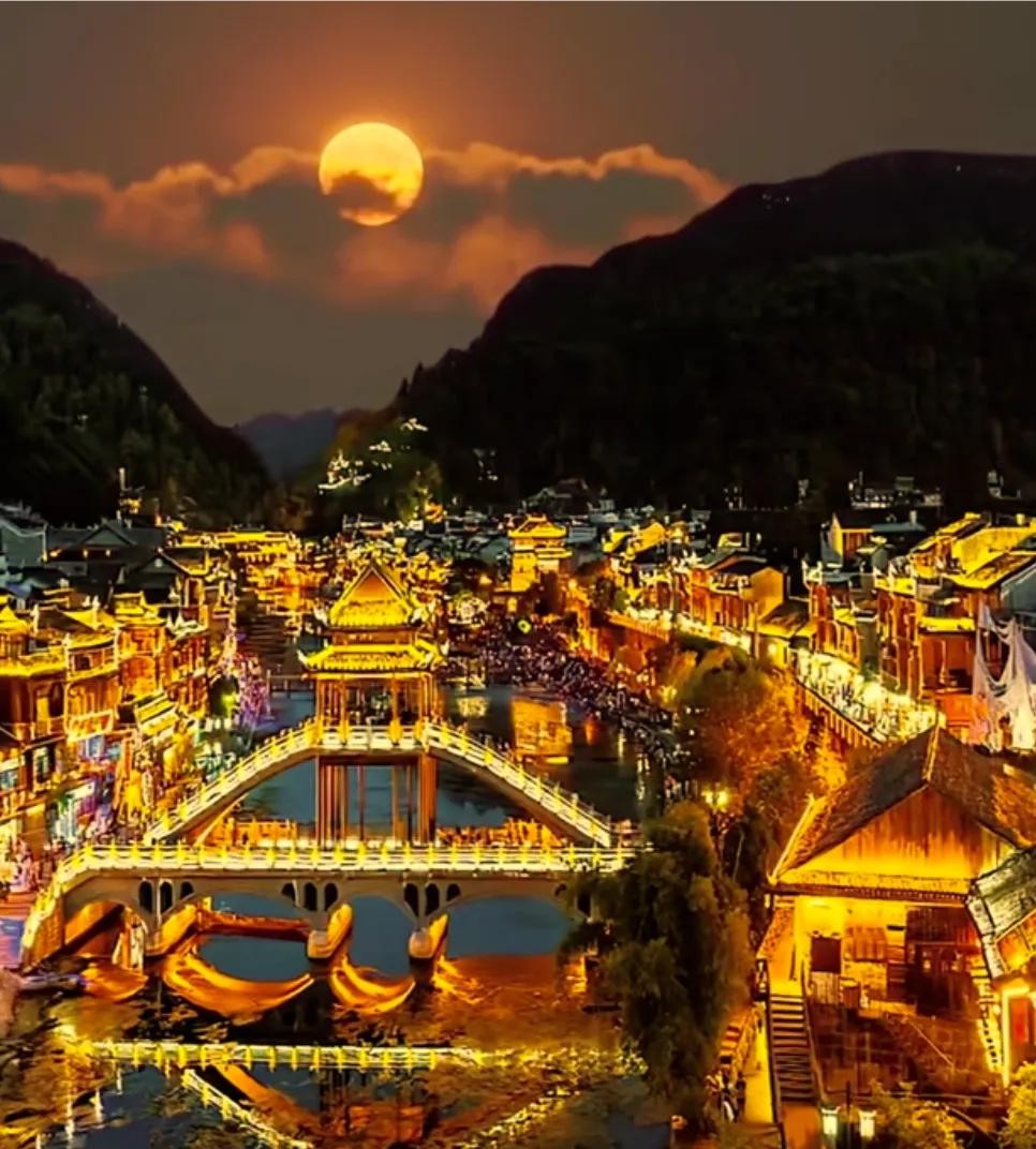 4. 湘西凤凰古城:位于湖南凤凰县境内,是中国历史文化名城之一,以其保存完好的明清建筑、独特的民俗文化而著名。