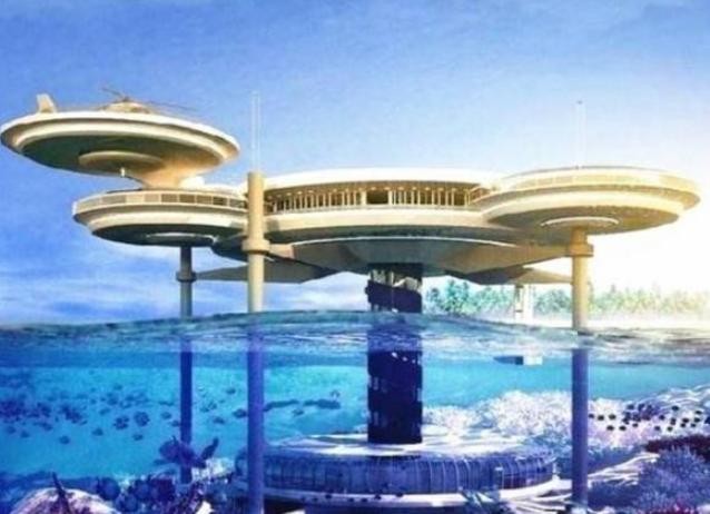 其水下部分将位于水下10米处,与水上的一个圆盘形状的建筑连通,而整个建筑的形状则酷似外星飞船,旅客住在水下的酒店可与鱼群共眠。