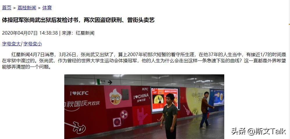 以上内容参考自红星新闻,2020年04月07日,体操冠军张尚武出狱后发检讨书,两次因盗窃获刑、曾街头卖艺