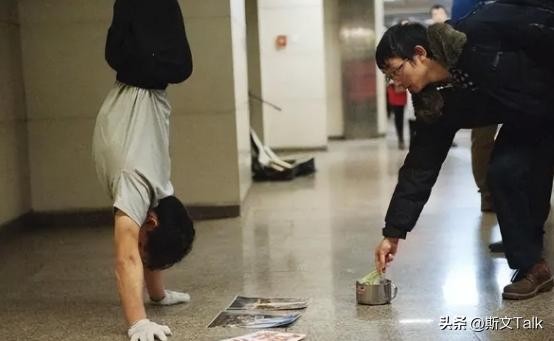 在2011年的时候,有人看到他在地铁上开始卖艺,给大家展示他之前学的体操技巧。