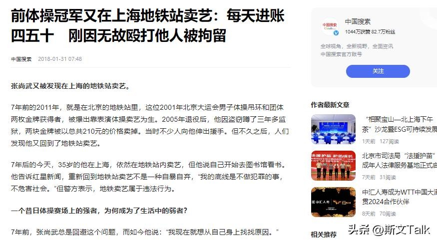 其实很多人在看到他街头卖艺的消息后,也曾在网上发帖,不明白为何张尚武能够在体操方面取得如此优秀的成绩,但到了生活中却是一个弱者呢?